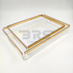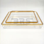 - 1 siparişin içerisinde büyük ve küçük olmak üzere 2 adet Gold Model Şeffaf Pleksi Tepsi bulunmaktadır.